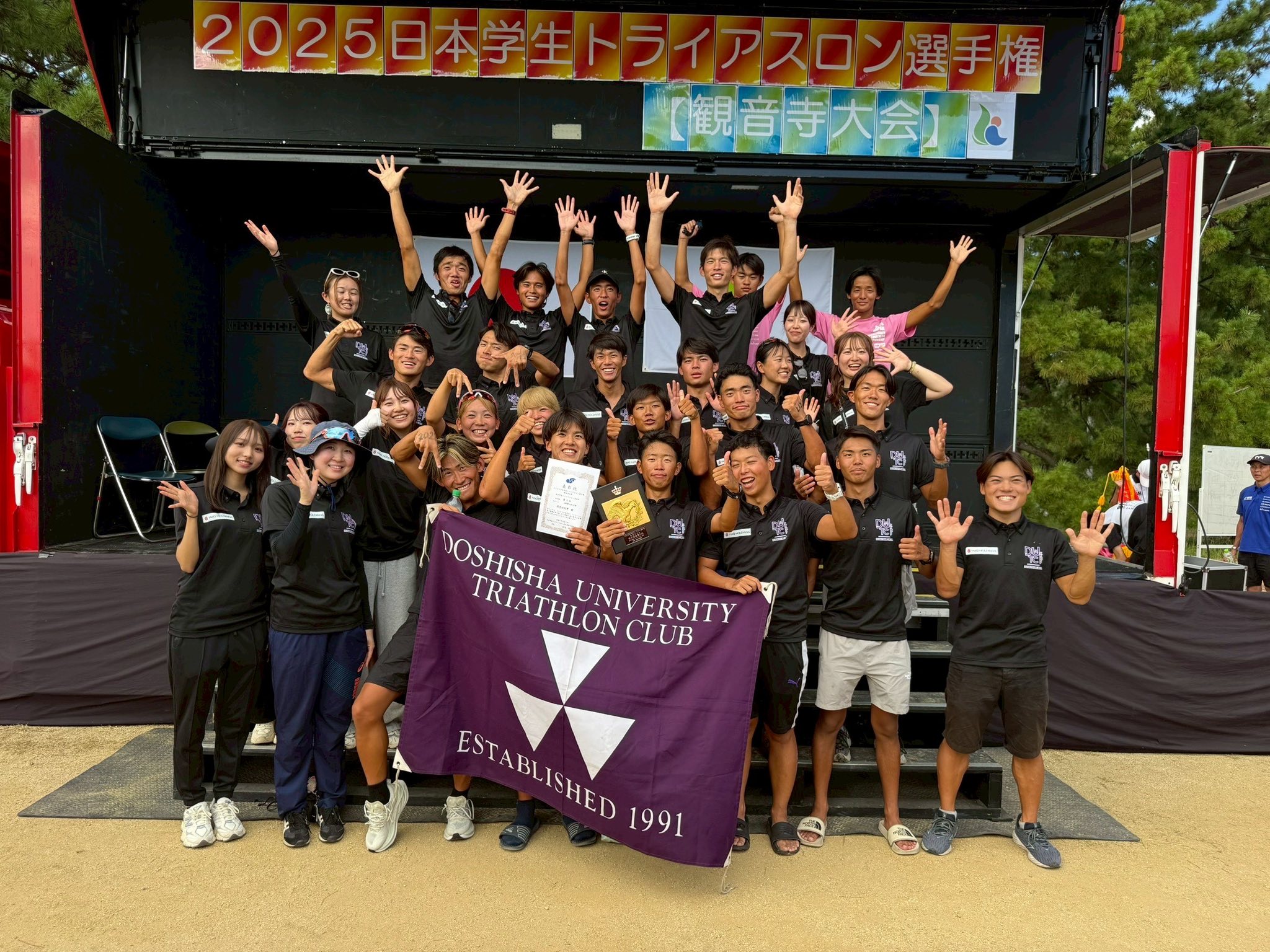 灼熱のレースとなりましたが、全員が最後まで諦めることなく持てる力を尽くし走り切りました。結果としては、男子が団体5位入賞、女子は惜しくも団体を組むことができませんでしたが、インカレの舞台で各自が持ち味を発揮し、同志社らしい粘り強いレースを見せることができました。